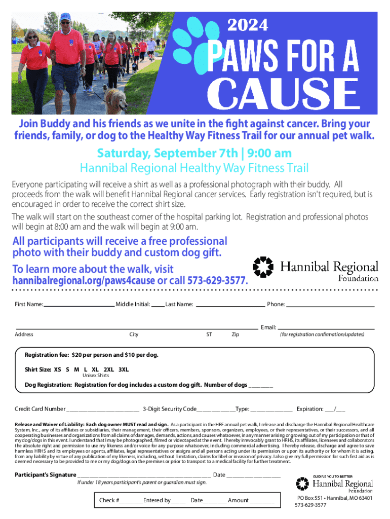 Join Buddy and his friends as we unite in the fight against cancer. Bring your friends, family, or dog to the Healthy Way Fitness Trail for our annual pet walk. Saturday, September 7th | 9:00 am Hannibal