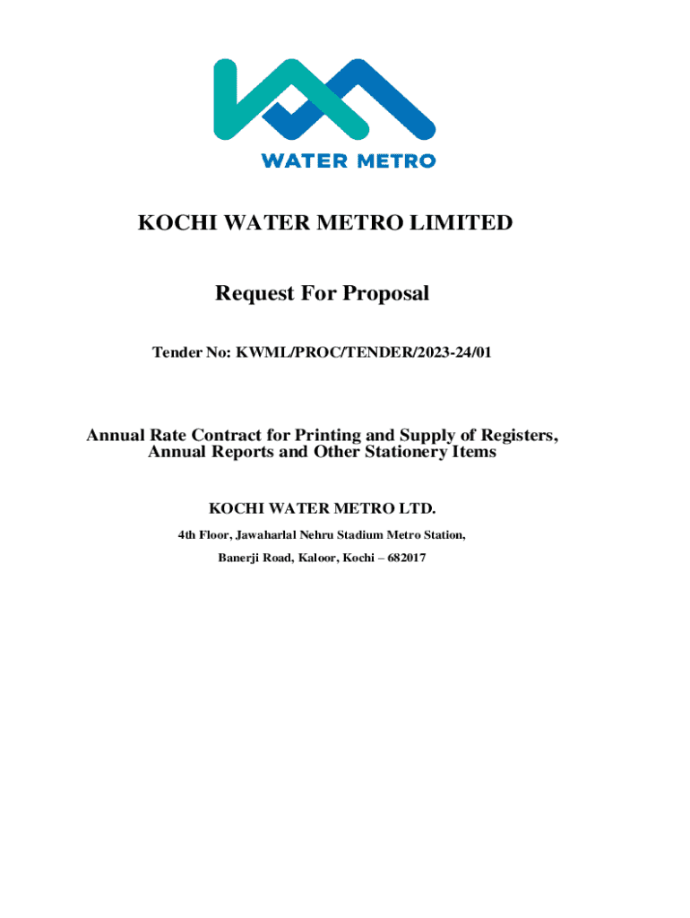 Tender No: WML/PRO/TENDER/202324/01Annual Rate Contract for Printing and Supply of Registers,