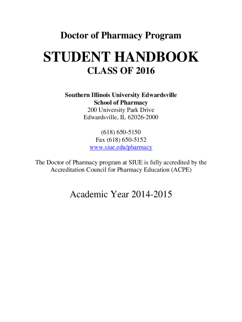 Doctor of Pharmacy ProgramSTUDENT HANDBOOK