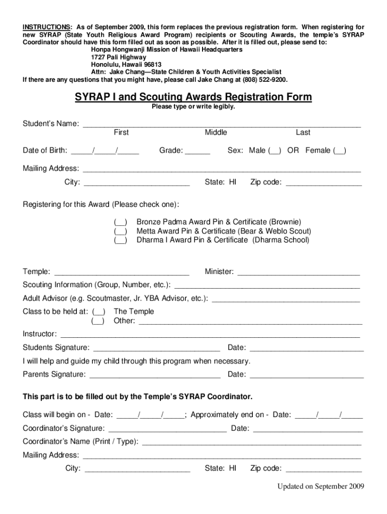 Get the free SYRAP I and Scouting Awards Registration Form