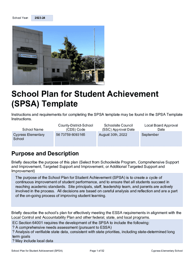 School Year:202324SPSA Title Preschool Plan for Student Achievement (SPA) Template Instructions and requirements for completing the SPA template may be found in the SPA Template Instructions. School