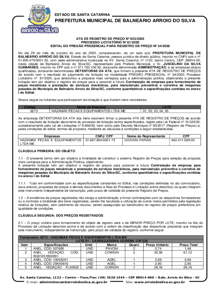 Obtenha o gratuito No dia 29 do ms de outubro do ano de 2020, compareceram, de um lado a(o) PREFE...