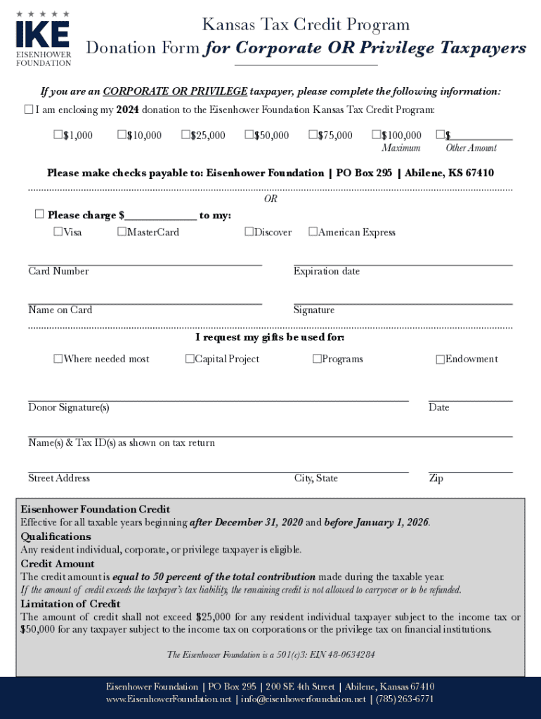 Get the free Kansas Tax Credit Program Donation Form for Corporate ...