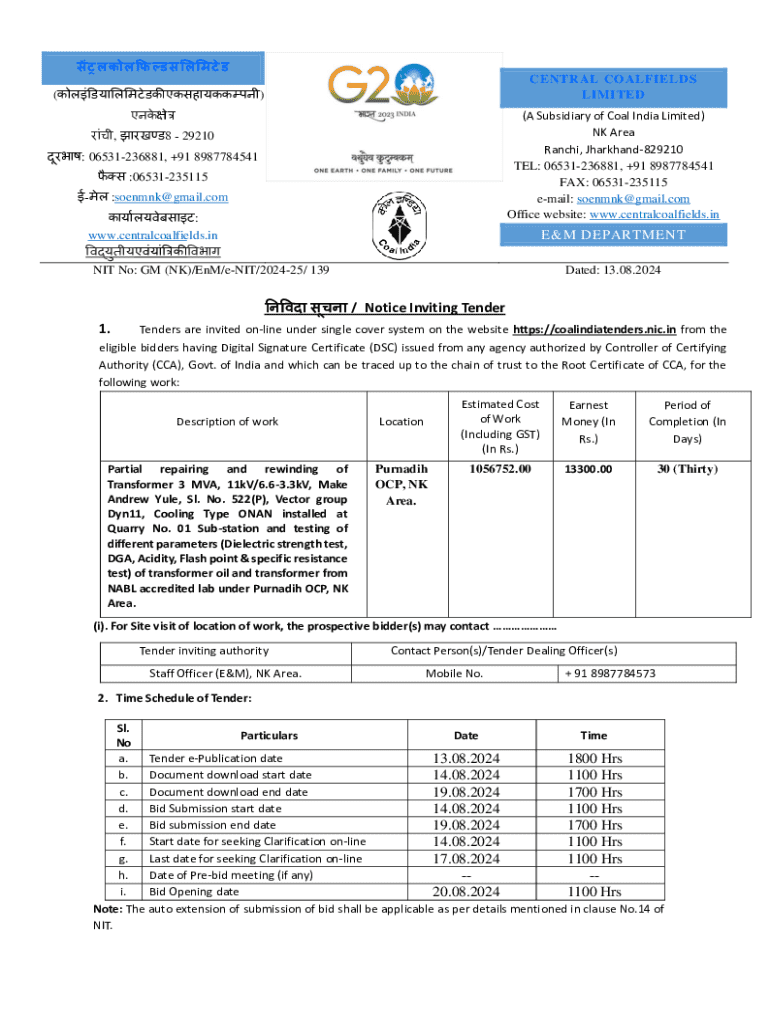 Fill out your notice inviting tender 2024-25 online with pdfFiller!