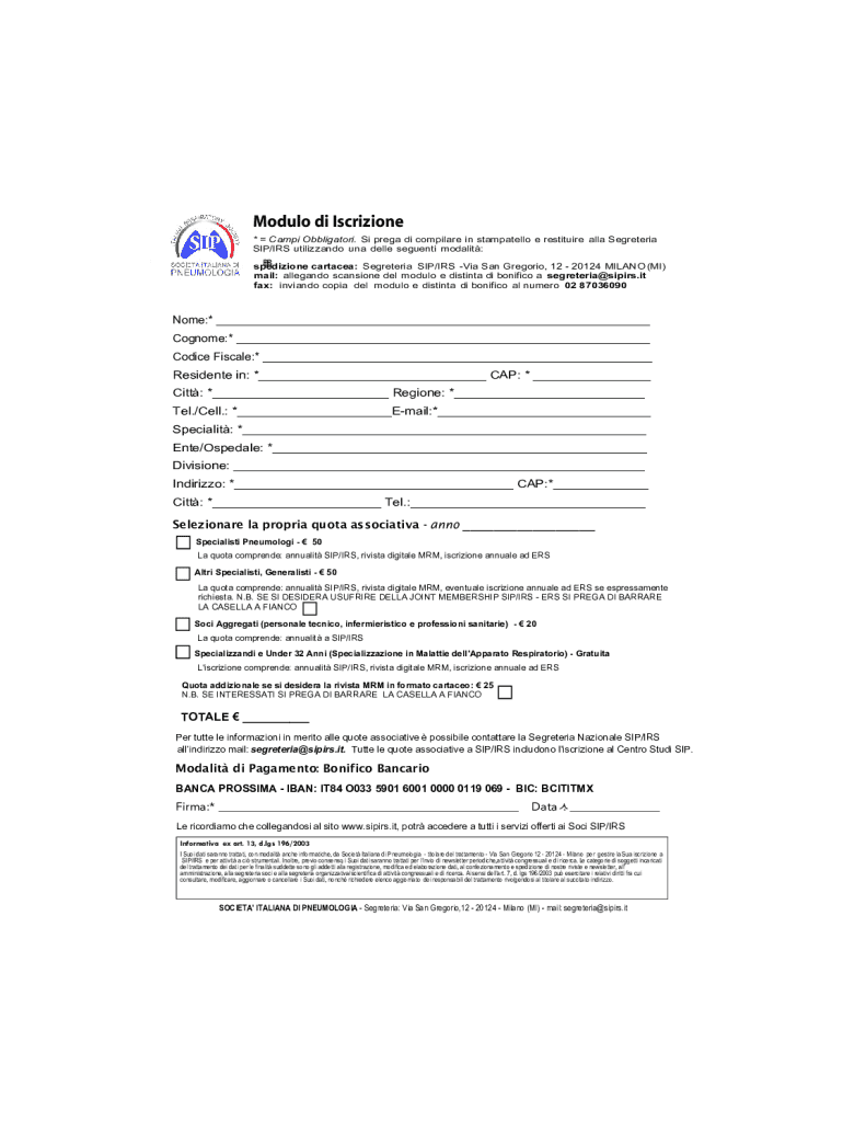 Ottieni il gratuito Si prega di compilare in stampatello e restituire alla Segreteria