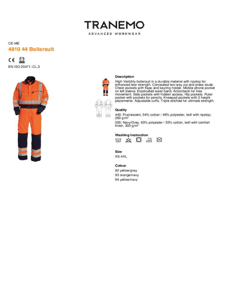 CEME4810 44 BoilersuitEN ISO 20471: CL.3