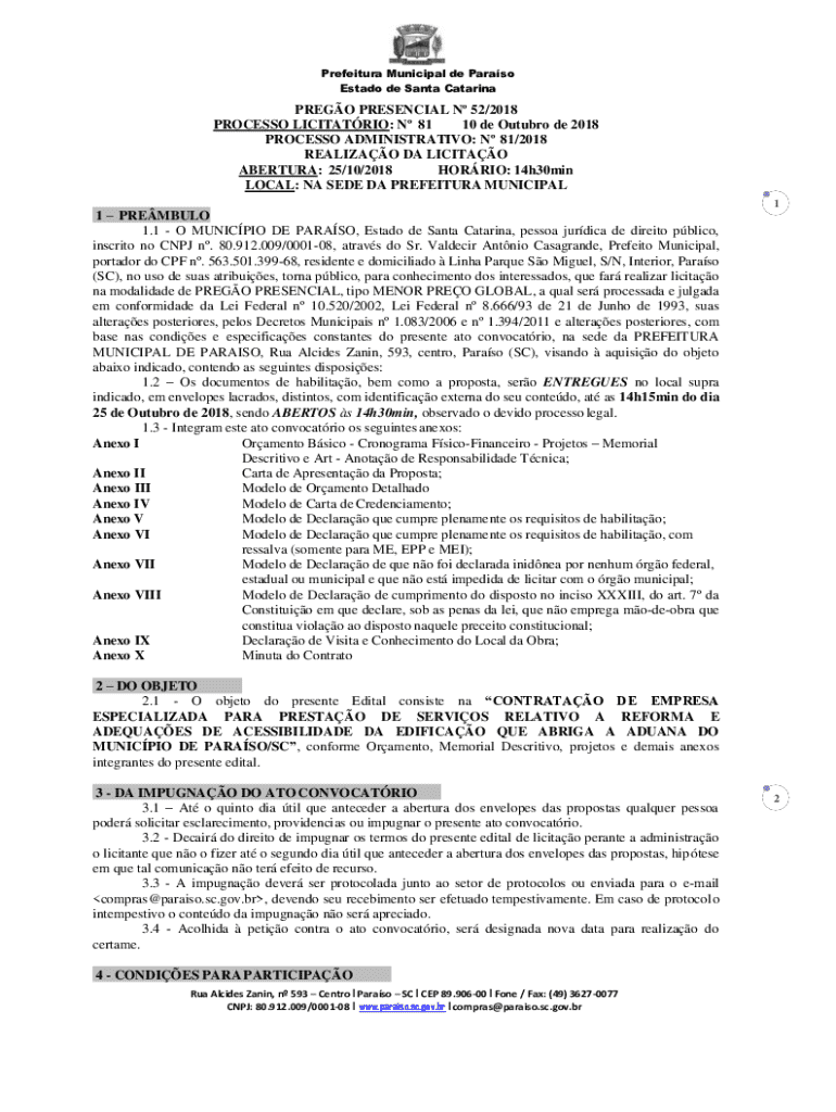 Verificar a documentação necessária para participar do processo licitatório n 81