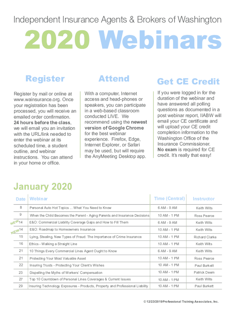 Independent Insurance Agents & Brokers of Washington2020 Webinars