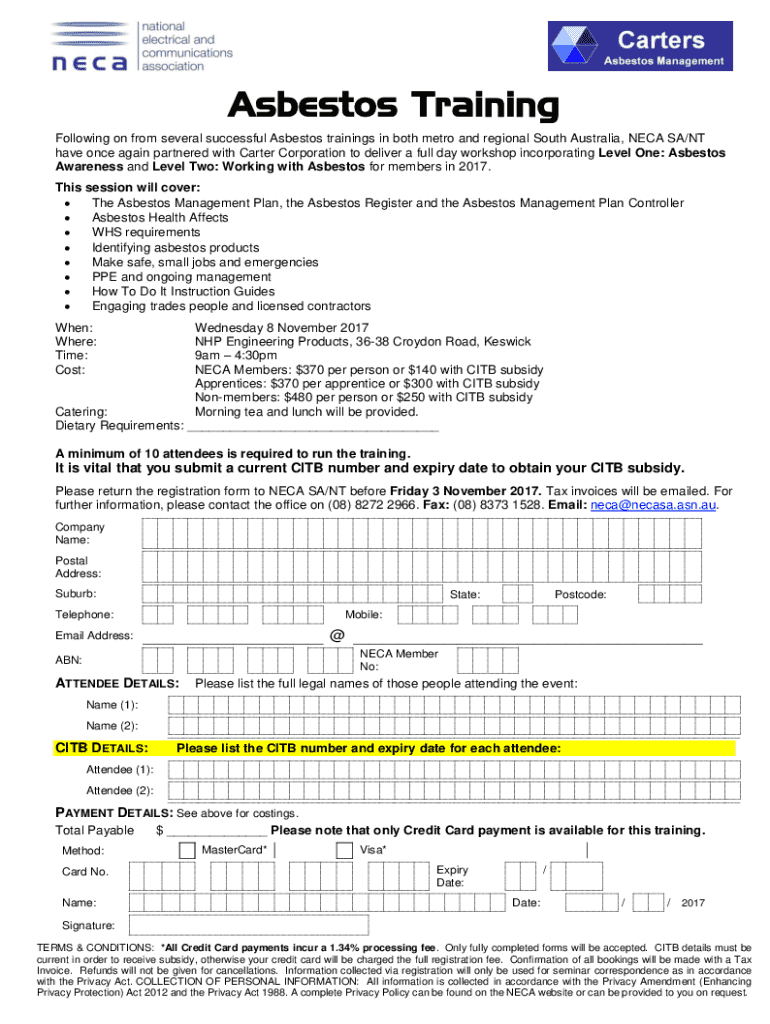 Asbestos Training Following on from several successful Asbestos trainings in both metro and regional South Australia, NEC ASA/NT have once again partnered with Carter Corporation to deliver a full