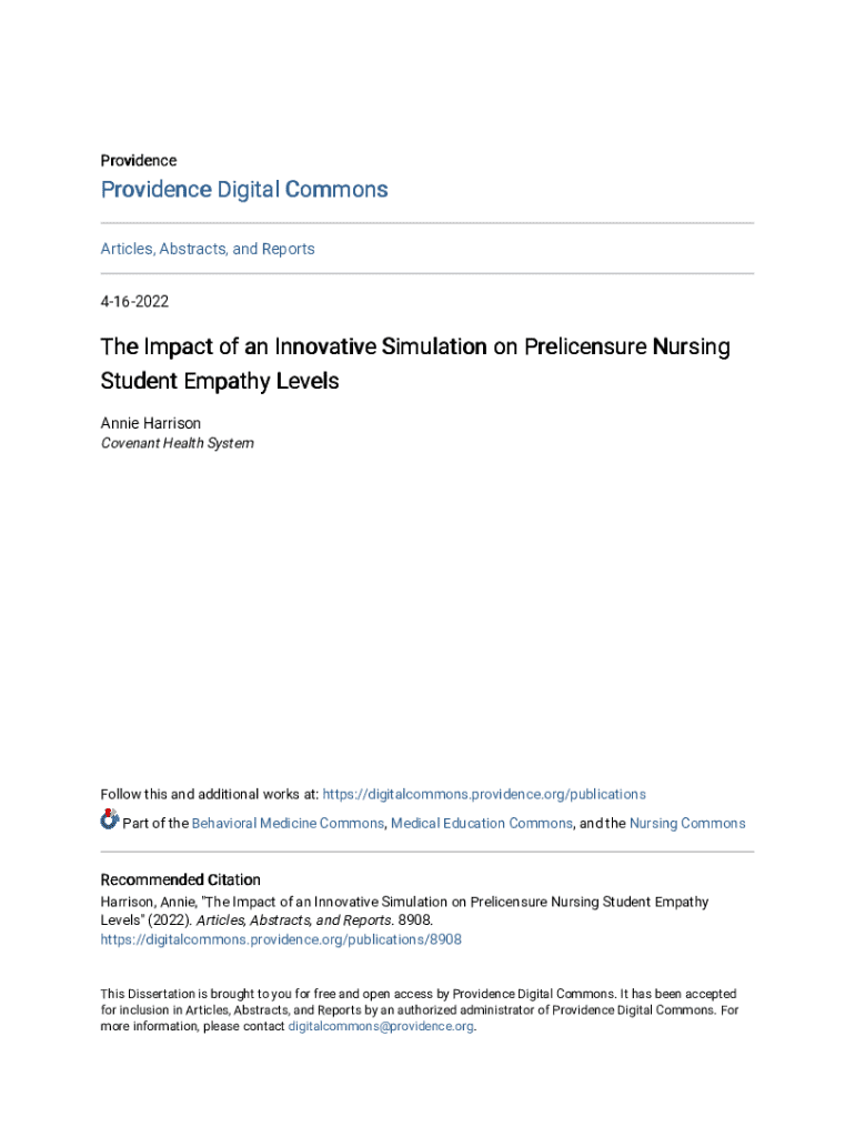 Providence Providence Digital Commons Articles, Abstracts, and Reports 4162022The Impact of an Innovative Simulation on Licensure Nursing Student Empathy Levels Annie Harrison Covenant Health SystemFollow