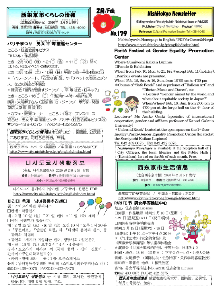 /Feb. (Editing version of the city bulletin Nishitokyo) Issued on Feb.5.2020 2020 2 5 Publisher: City of Nishitokyo TEL4384040 No