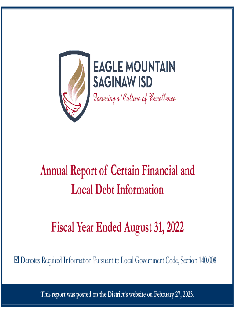 Explore the Eagle Mountain-Saginaw ISD Annual Report for FY 2022. Discover financial integrity ratings, tax rates, and funding sources that shape education in the district.