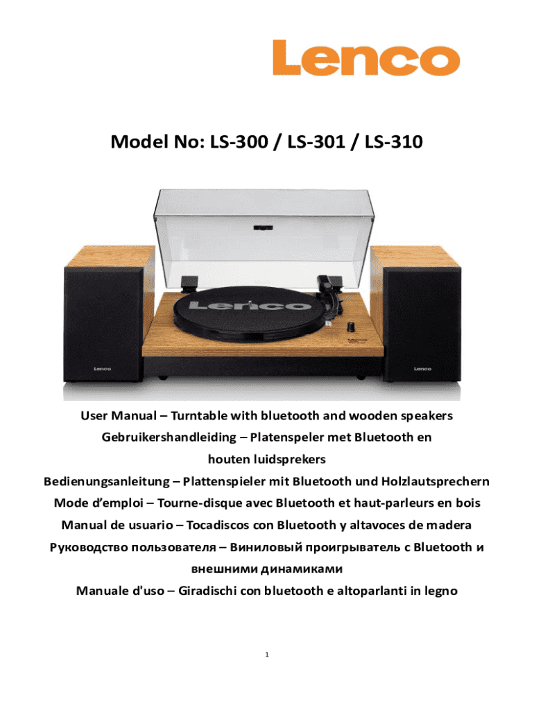 Model No: LS300 / LS301 / LS310User Manual Turntable with Bluetooth and wooden speakers