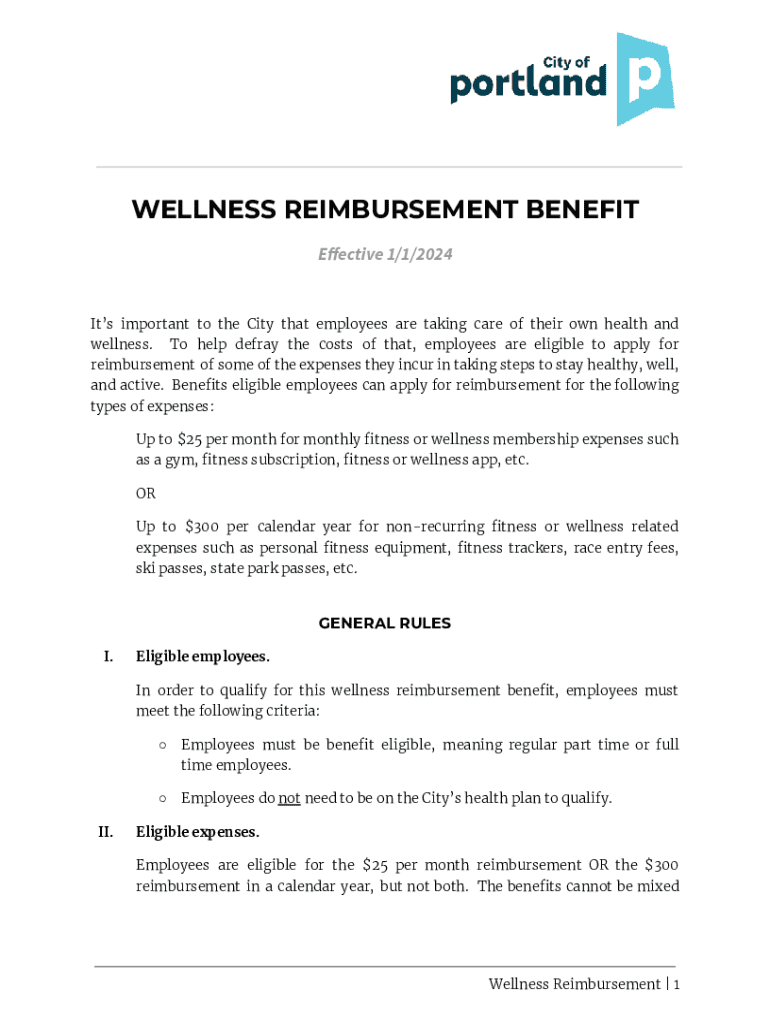 WELLNESS REIMBURSEMENT BENEFIT Effective 1/1/2024Its important to the City that employees are taking care of their own health and wellness. To help defray the costs of that, employees are eligible