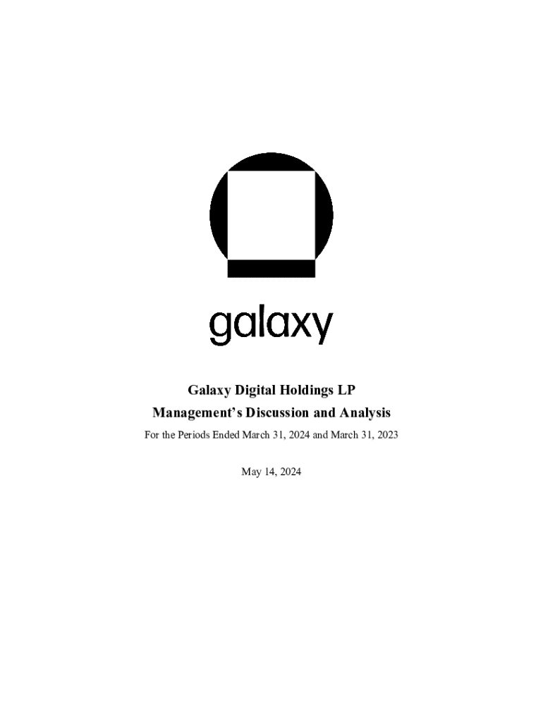 Galaxy Digital Holdings LP Managements Discussion and Analysis For the Periods Ended March 31, 2024, and March 31, 2023, May 14, 2024Table of Contents Page Introduction. . . . . . . . . . . . . .
