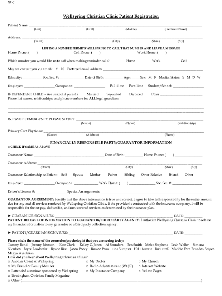 Get, Create, Make and Sign wellspring christian clinic incabout