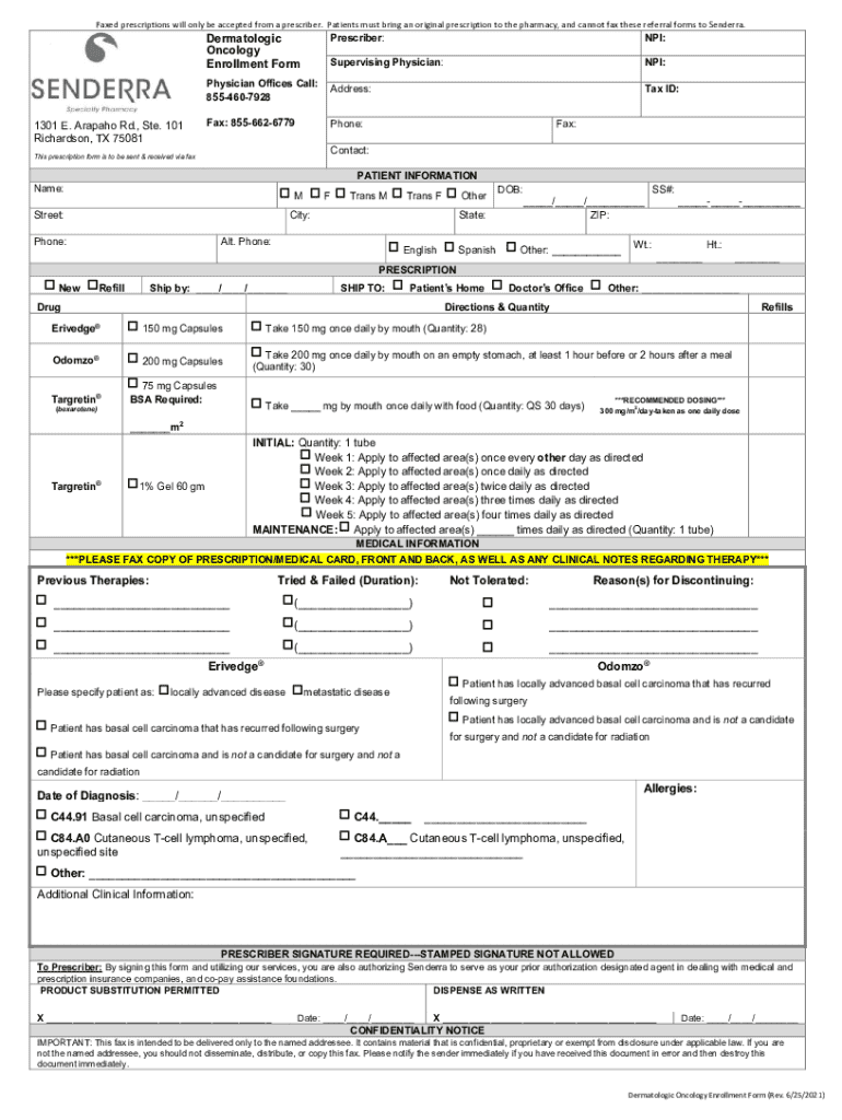 Faxed prescriptions will only be accepted from a prescriber. Patients must bring an original prescription to the pharmacy, and cannot fax these referral forms to Senderra.Prescriber:NPI:Supervising
