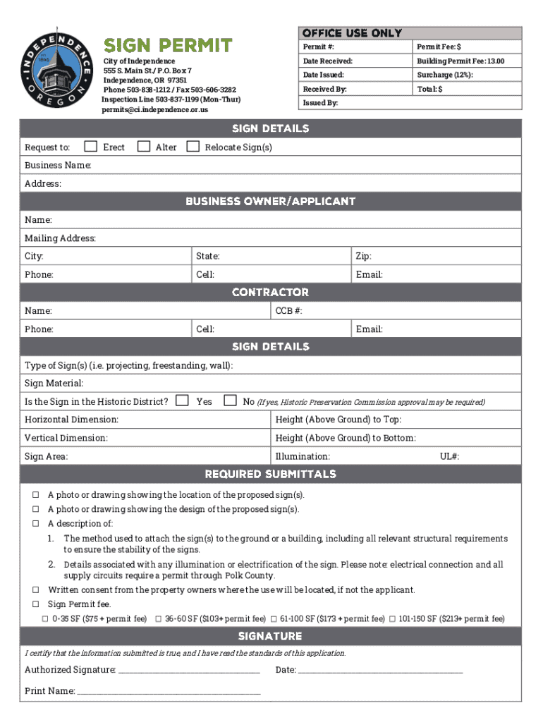 Apply for a Sign Permit in Independence, OR. Submit details and fees for sign installations. Ensure compliance with local regulations for 2023.