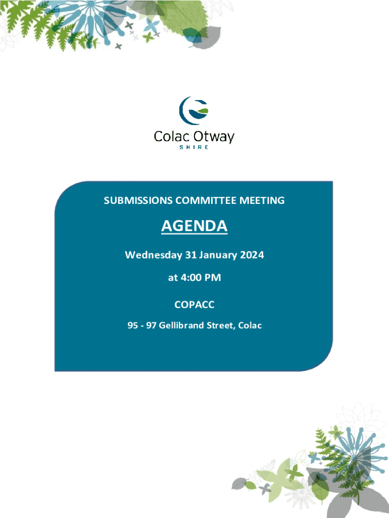 SUBMISSIONS COMMITTEE MEETINGAGENDA Wednesday 31 January 2024 at 4:00 PM COP ACC 95 97 Gilliland Street, Coca-Cola AWAY SHIRE SUBMISSIONS COMMITTEE MEETING Wednesday 31 January 2024 TABLE OF CONTENTS