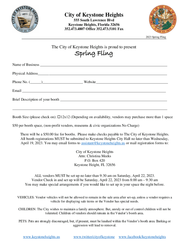 Spring Fling Vendor Registration is not the form you're looking for?Search for another form here.