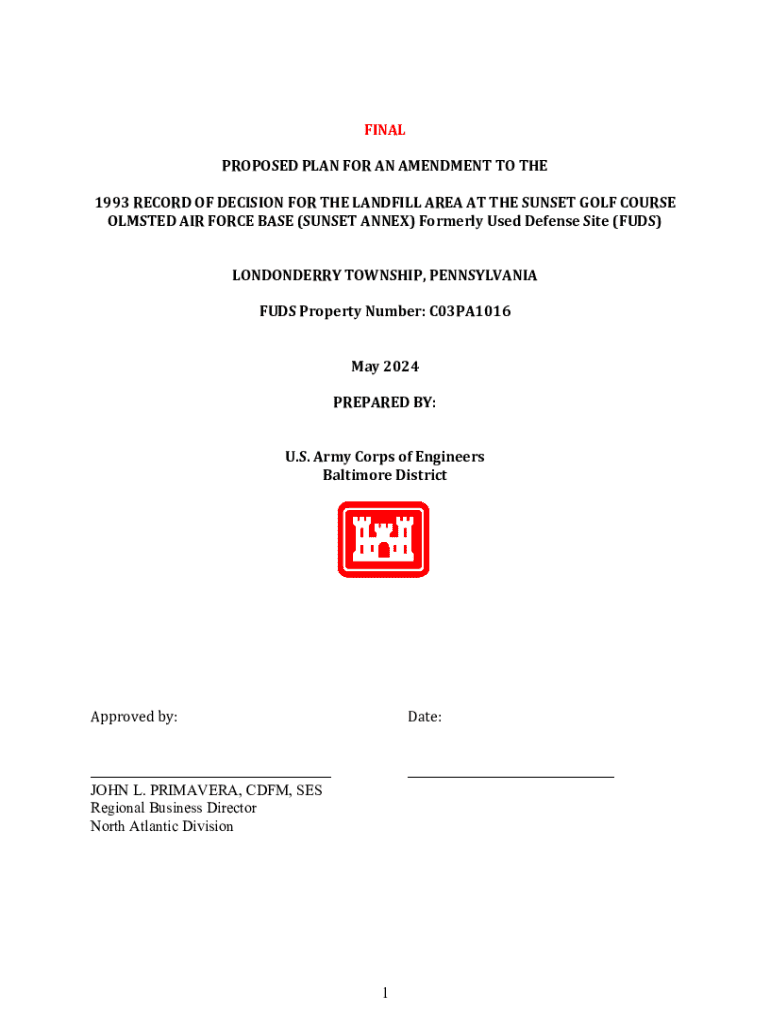 FINAL PROPOSED PLAN FOR AN AMENDMENT TO THE 1993 RECORD OF DECISION FOR THE LANDFILL AREA AT THE SUNSET GOLF COURSE OLMSTED AIR FORCE BASE (SUNSET ANNEX) Formerly Used Defense Site (FUDs) LONDONDERRY