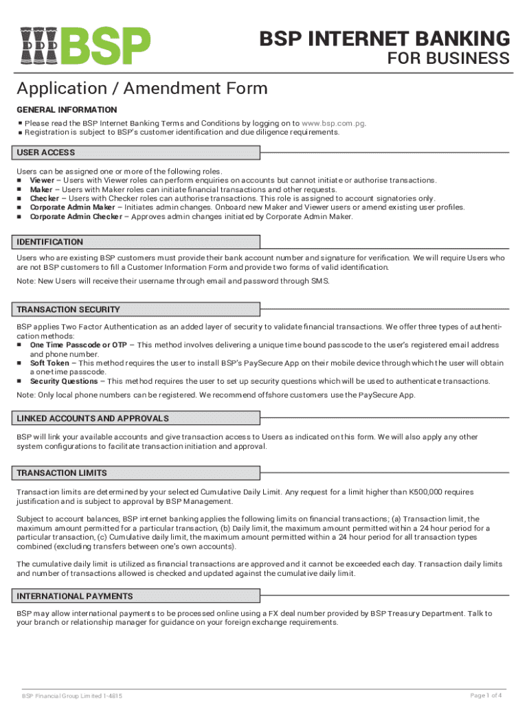 BSP INTERNET BANKING BUSINESSApplication / Amendment Form