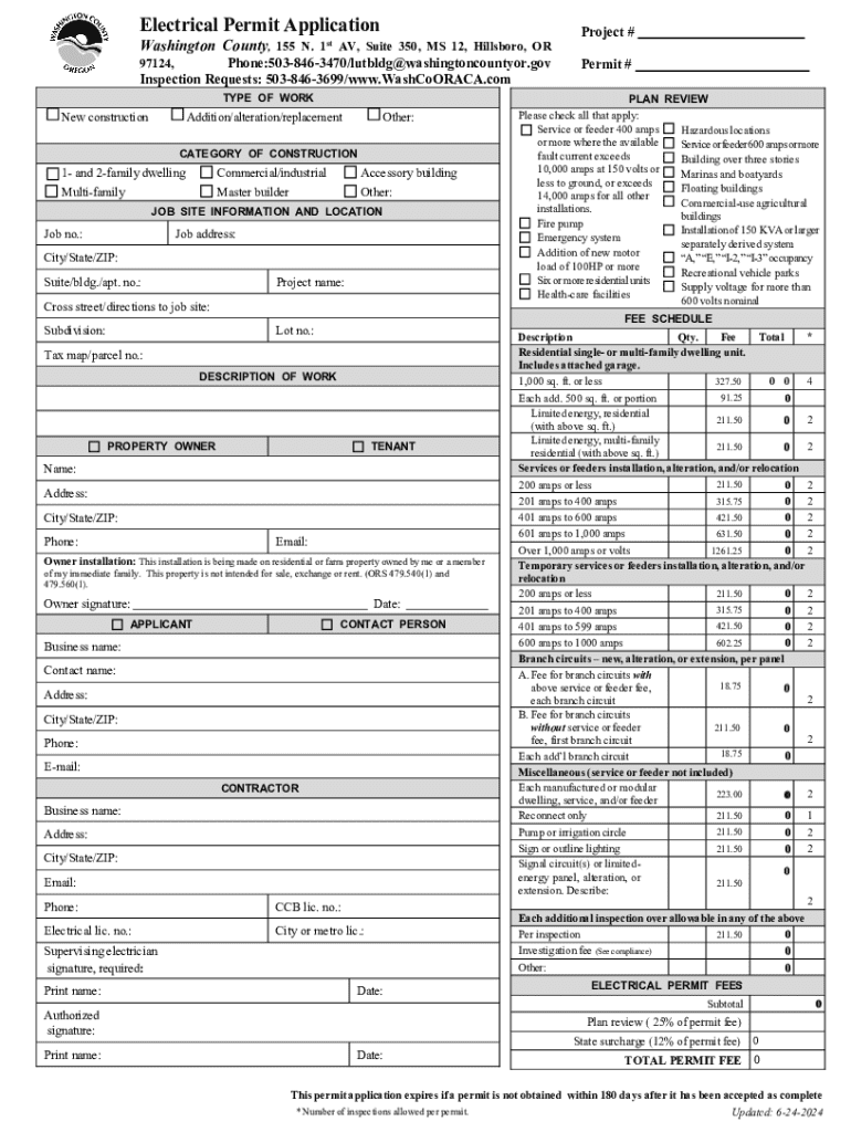 SubmitElectrical Permit ApplicationReset Form Washington County, 155 N. 1st AV, Suite 350, MS 12, Hillsboro, OR