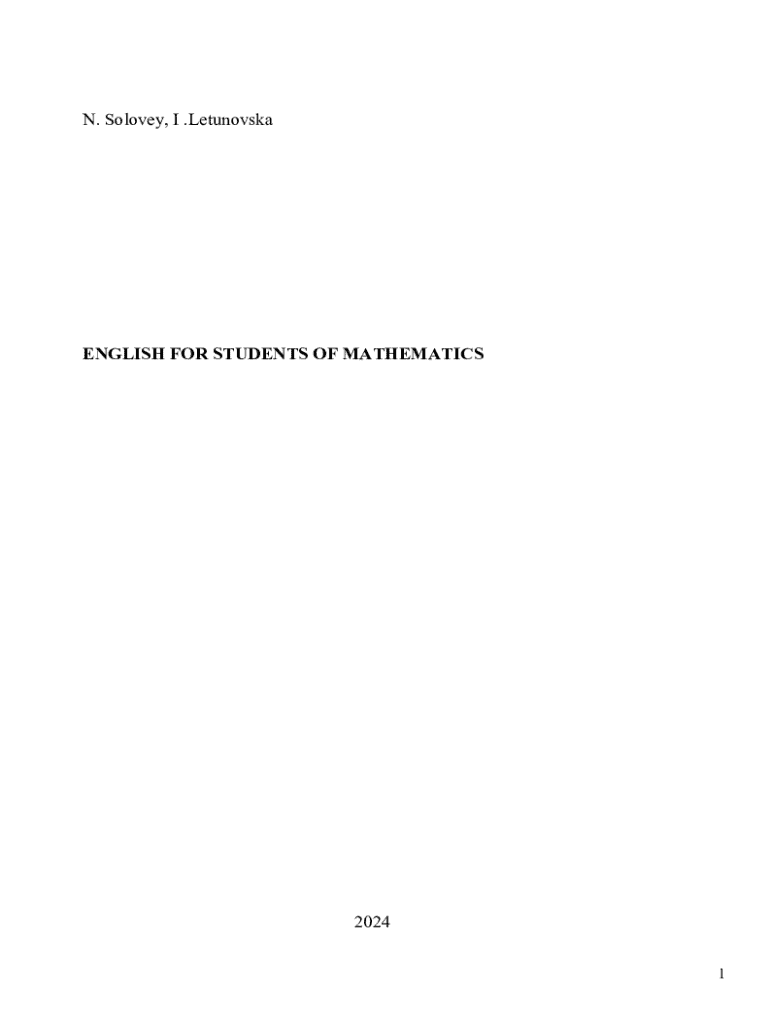N. Solovey, I .LetunovskaENGLISH FOR STUDENTS OF MATHEMATICS2024 1 , 13 04 2024 : .., .. (