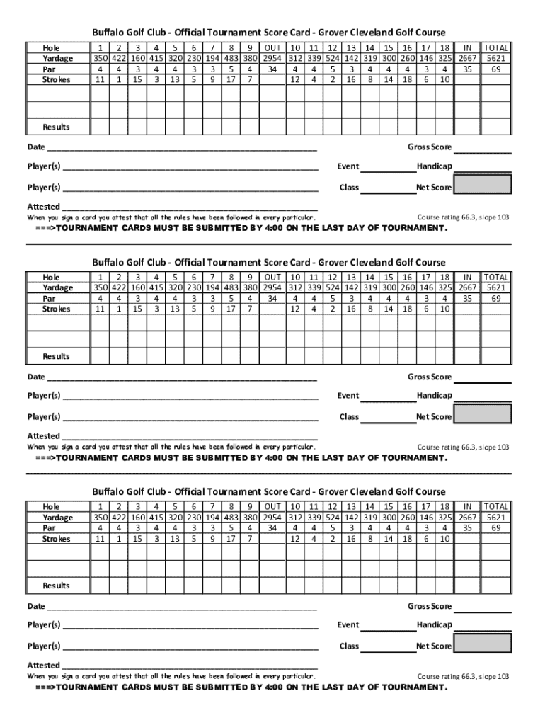 Get the free Buffalo Golf Club - Official Tournament Score Card - Grover ...
