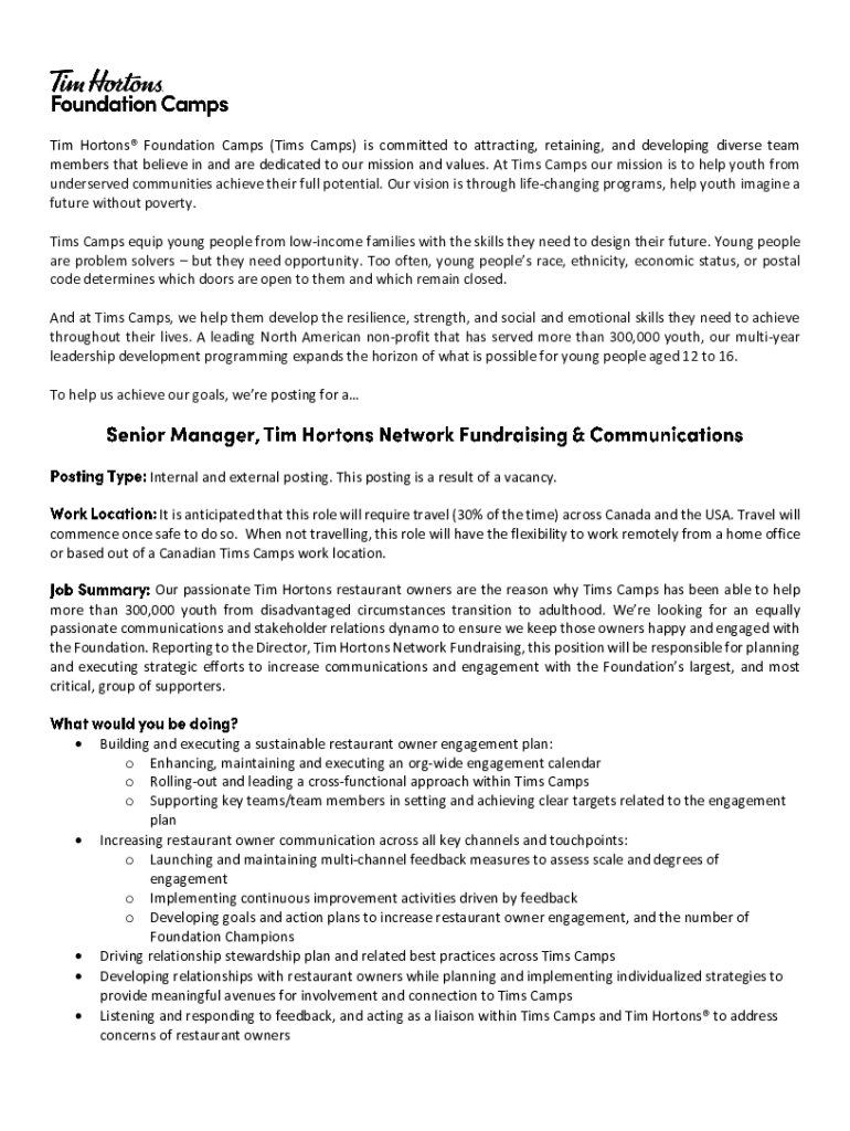 Fill out your tim hortons form strategic online with pdfFiller!