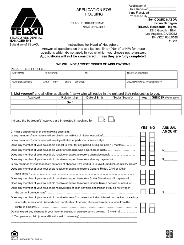 Individuals who are applying for housing assistance through the Telacu Tierra Serrano 773 program.