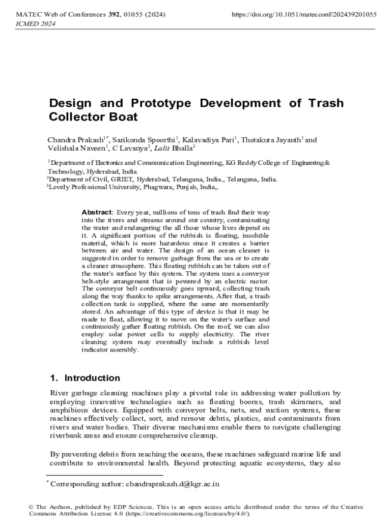 ICED 2024https://doi.org/10.1051/matecconf/202439201055Design and Prototype Development of Trash