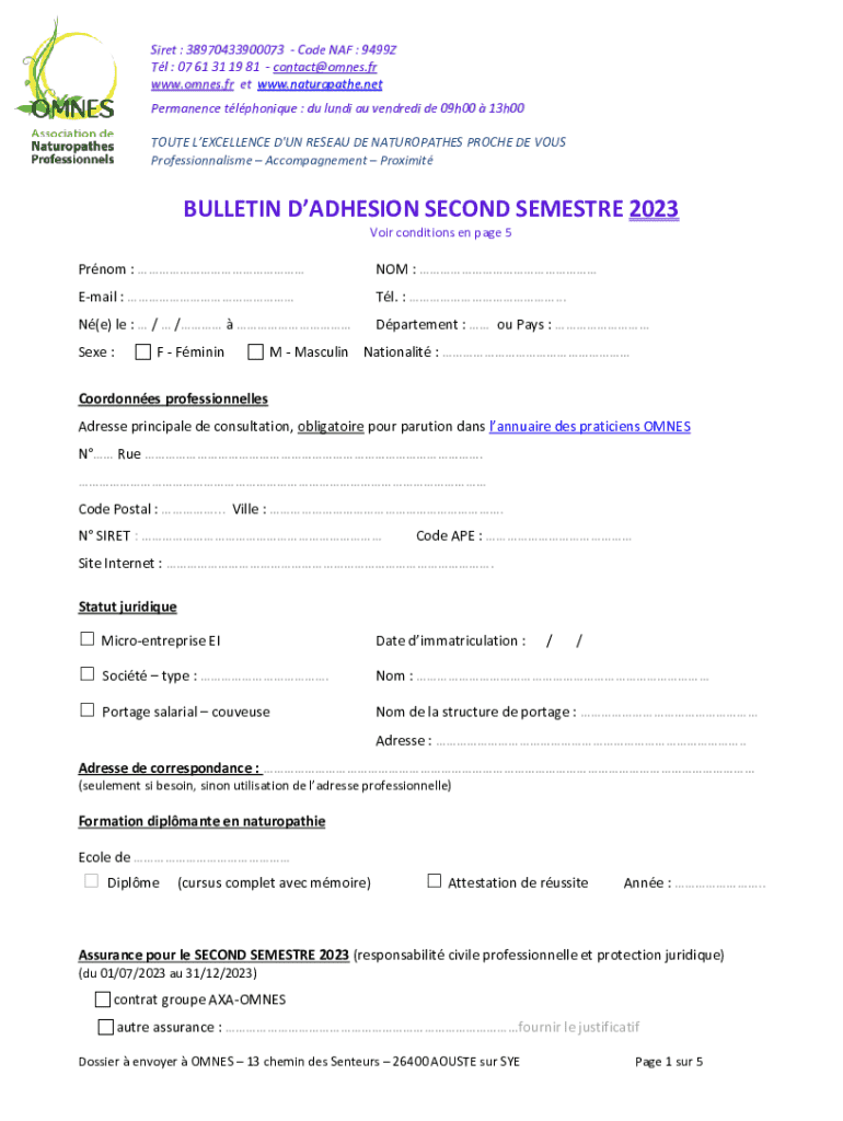 Obtenir le gratuit BULLETIN D'ADHESION NATUROPATHIE ANIMALIRE ... - OMNES