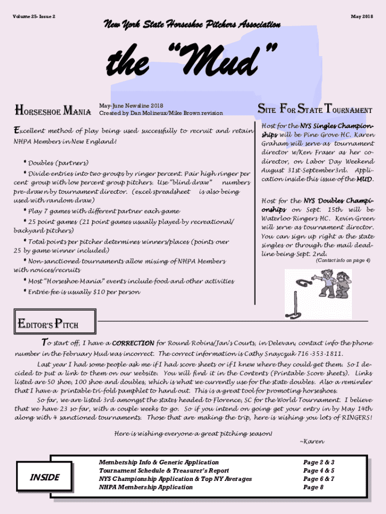 Volume 25 Issue 2May 2018New York State Horseshoe Pitchers Association the Mud