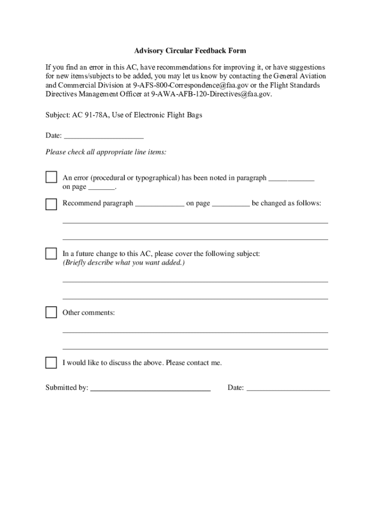 U.S. Department of Transportation Federal Aviation Administration Subject: Use of Electronic Flight BagsAdvisory Circular Date: 2/23/24 Initiated by: AFS800AC No: 9178A Change:1 PURPOSE OF THIS ADVISORY