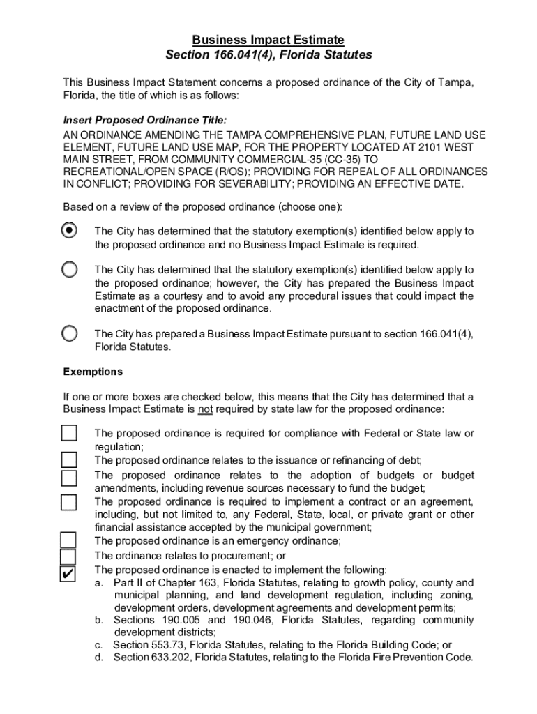 Get the free Business Impact Estimate Section 166.041(4), Florida ...