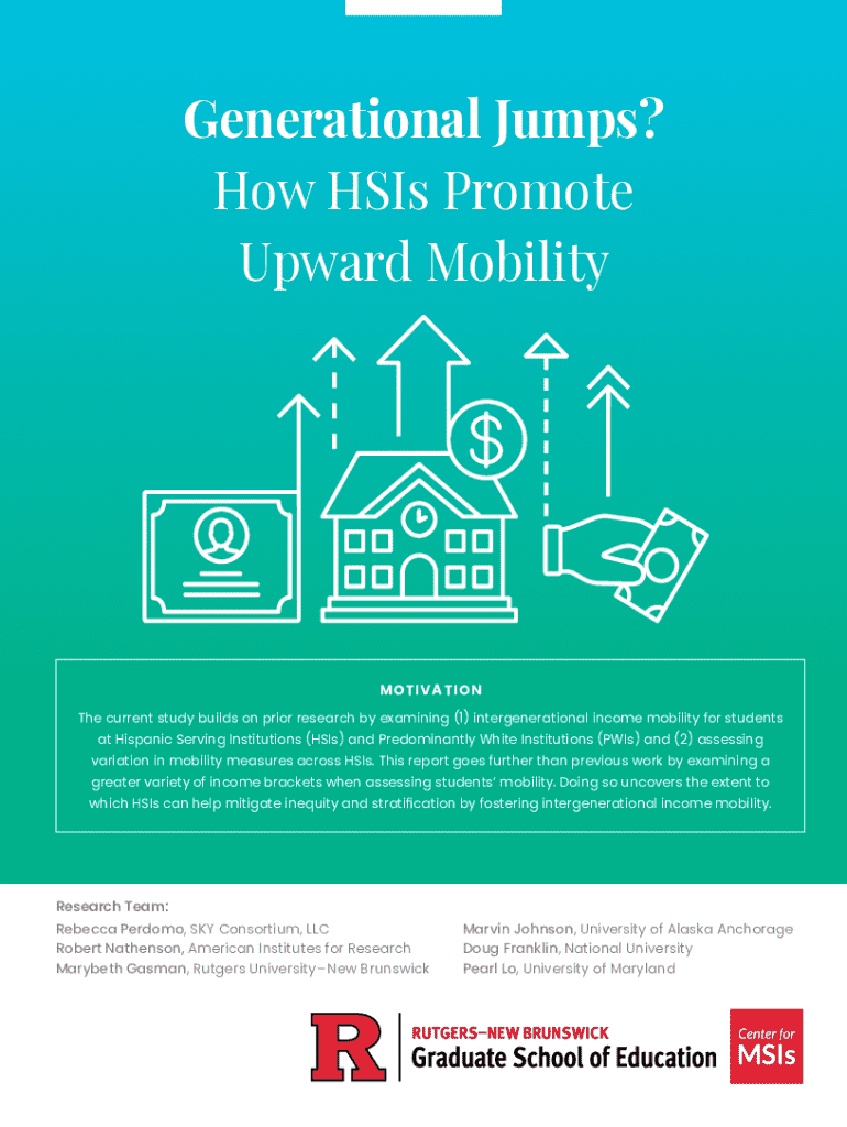 Generational Jumps? How HSIs Promote Upward MobilityMOTIVATION The current study builds on prior research by examining (1) intergenerational income mobility for students at Hispanic Serving Institutions