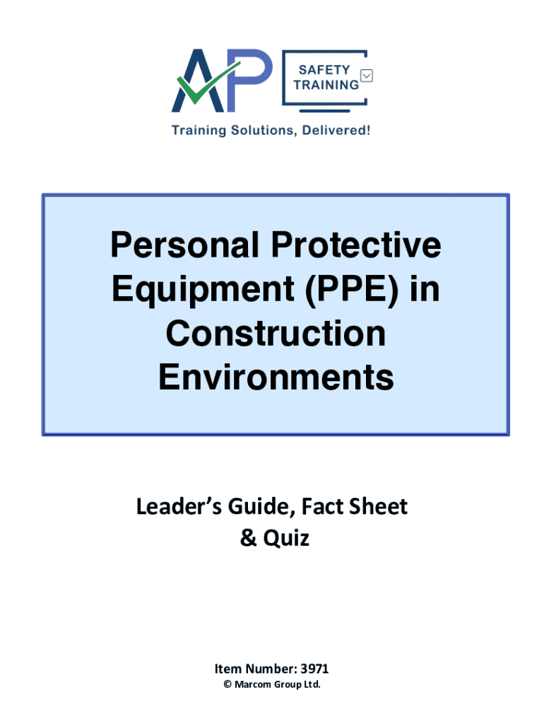 Personal Protective Equipment (PPE) in Construction EnvironmentsLeaders Guide, Fact Sheet & Quite Number: 3971 Marco Group Ltd. This espouse Leaders Guide is provided to assist in conducting a successful
