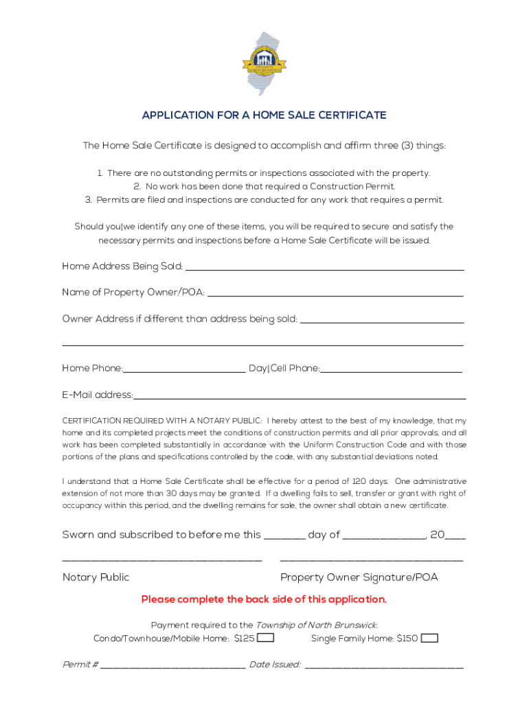 Get the free Application For a Home Sale Certificate
