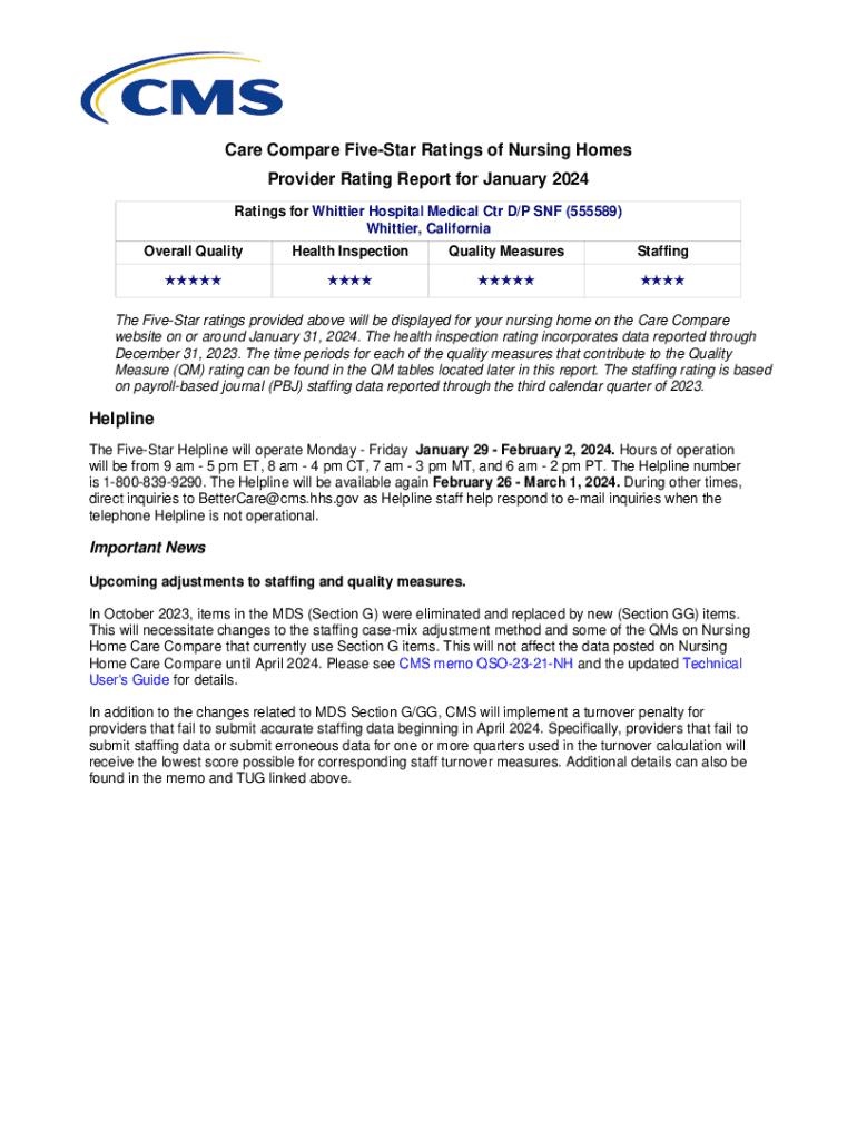 Ratings for Whittier Hospital Medical Ctr D/P SNF (555589)