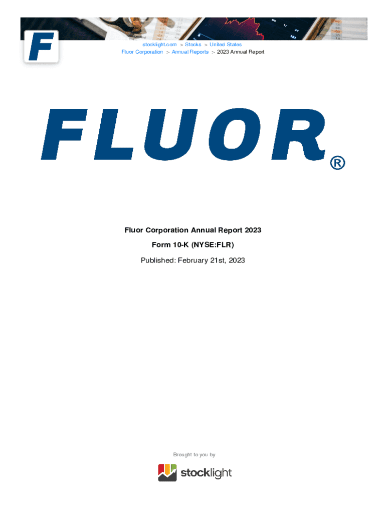 stocklight.com Stocks United States Fluor Corporation Annual Reports 2023 Annual ReportFluor Corporation Annual Report 2023 Form 10K (NYSE:FLR) Published: February 21st, 2023Brought to you byFluor