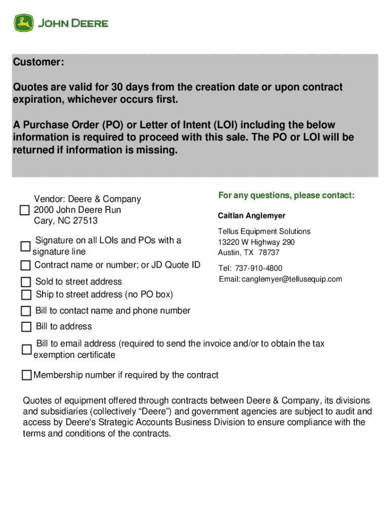 A Purchase Order (PO) or Letter of Intent (LOI) including the below