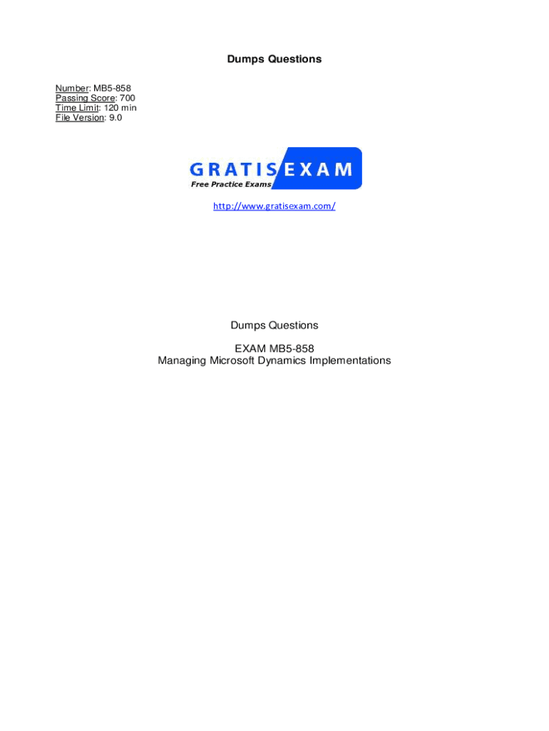Dump Questions Number: MB5858 Passing Score: 700 Time Limit: 120 min File Version: 9.0http://www.gratisexam.com/Dumps Questions EXAM MB5858 Managing Microsoft Dynamics ImplementationsExam A QUESTION