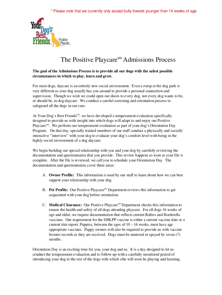 * Please note that we currently only accept bully breeds younger than 14 weeks of age. The Positive Players Admissions Process
