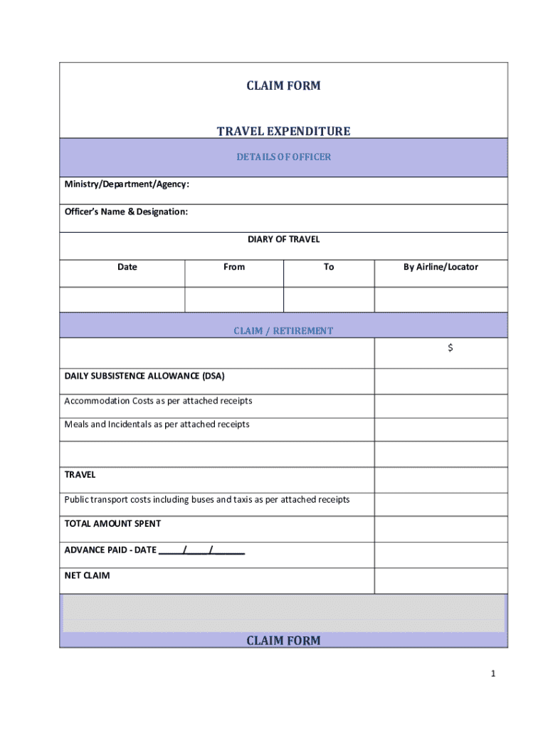 Fill out your claim form travel expenditure online with pdfFiller!