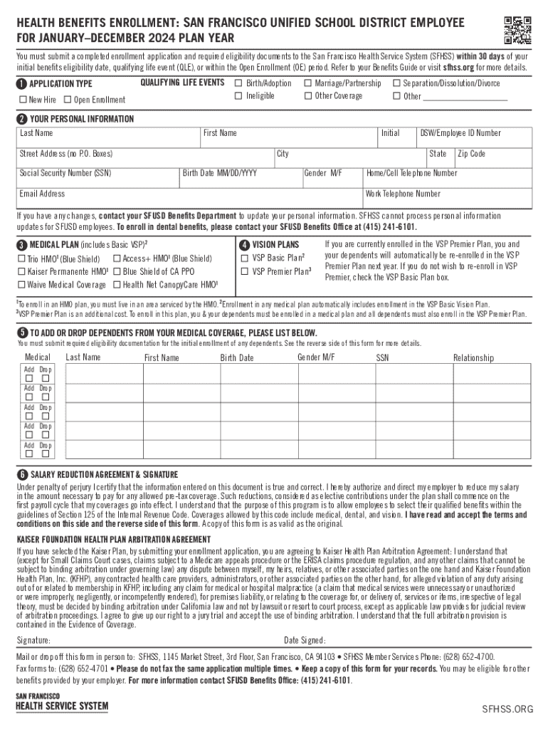 HEALTH BENEFITS ENROLLMENT: SAN FRANCISCO UNIFIED SCHOOL DISTRICT EMPLOYEE