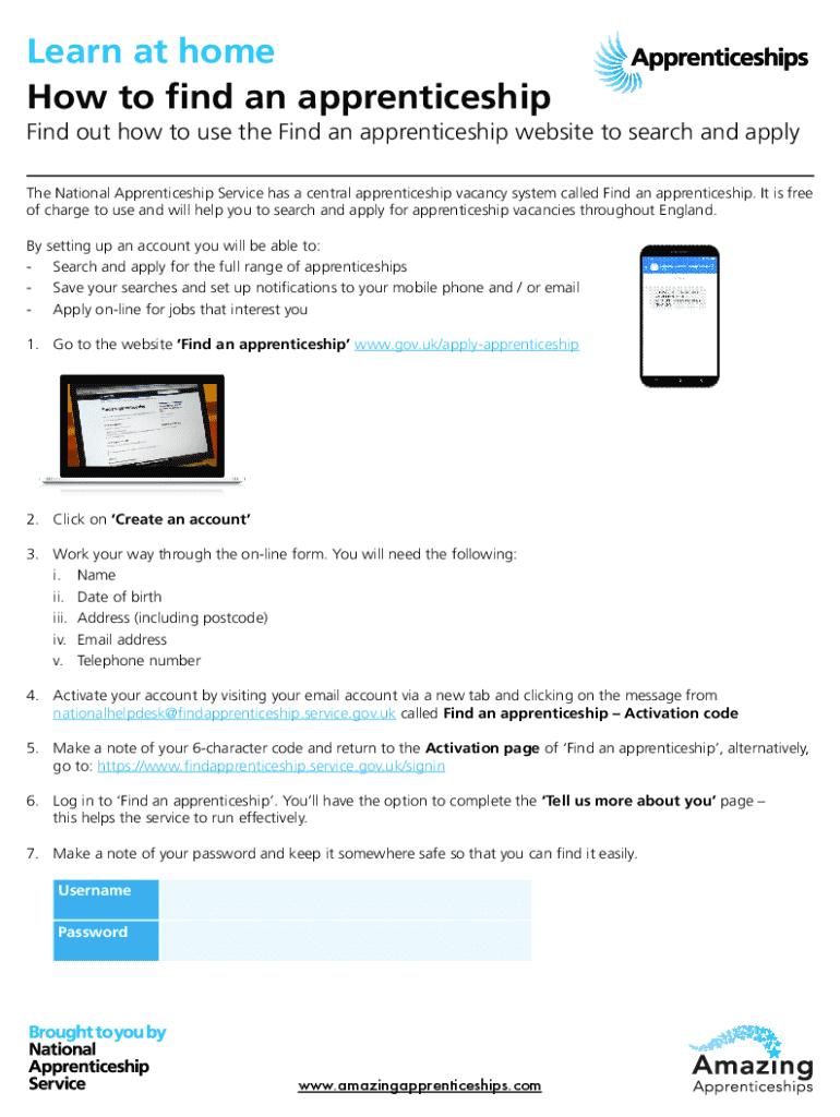 Learn at home How to find an apprenticeship Find out how to use the Find an apprenticeship website to search and apply The National Apprenticeship Service has a central apprenticeship vacancy system