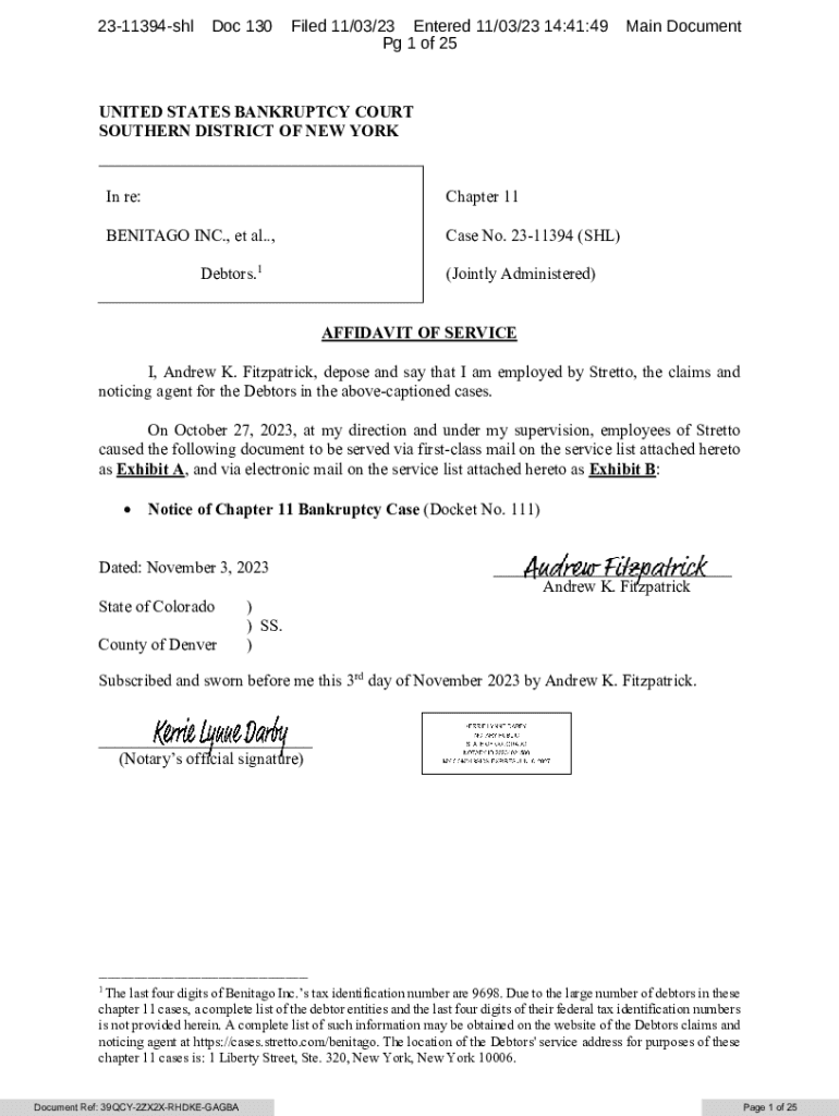 2311394shlDoc 130Filed 11/03/23 Entered 11/03/23 14:41:49 Pg 1 of 25Main DocumentUNITED STATES BANKRUPTCY COURT SOUTHERN DISTRICT OF NEW Yorkie re:Chapter 11BENITAGO INC., et al., Case No. 2311394