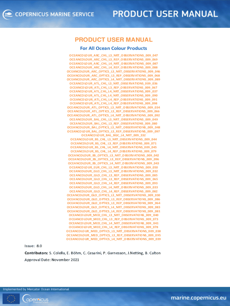 PRODUCT USER MANUAL For All Ocean Colour Products OCEANCOLOUR_ARC_CHL_L3_NRT_OBSERVATIONS_009_047 OCEANCOLOUR_ARC_CHL_L3_REP_OBSERVATIONS_009_069 OCEANCOLOUR_ARC_CHL_L4_NRT_OBSERVATIONS_009_087 OCEANCOLOUR_ARC_CHL_L4_REP_OBSERVATIONS_009_088