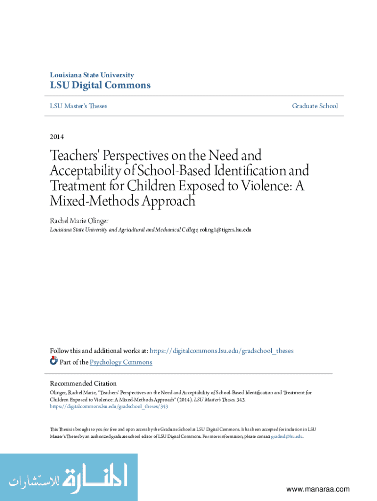Louisiana State UniversityLSU Digital Commons LSU Master\'s ThesesGraduate School2014Teachers\' Perspectives on the Need and Acceptability of SchoolBased Identification and Treatment for Children